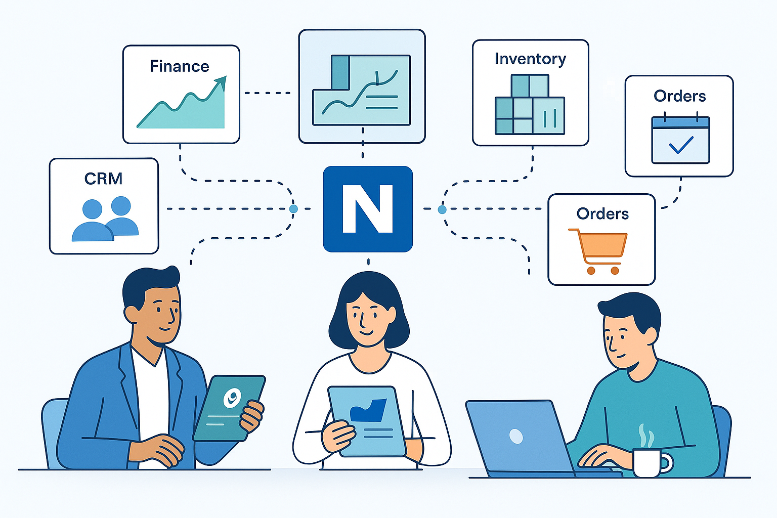 Our consultants understand how NetSuite financial management integrates with Salesforce Field Service for service-driven organizations, how inventory modules connect with warehouse management systems for distribution operations, and how project accounting capabilities support professional services firms managing resource allocation and time-based billing.